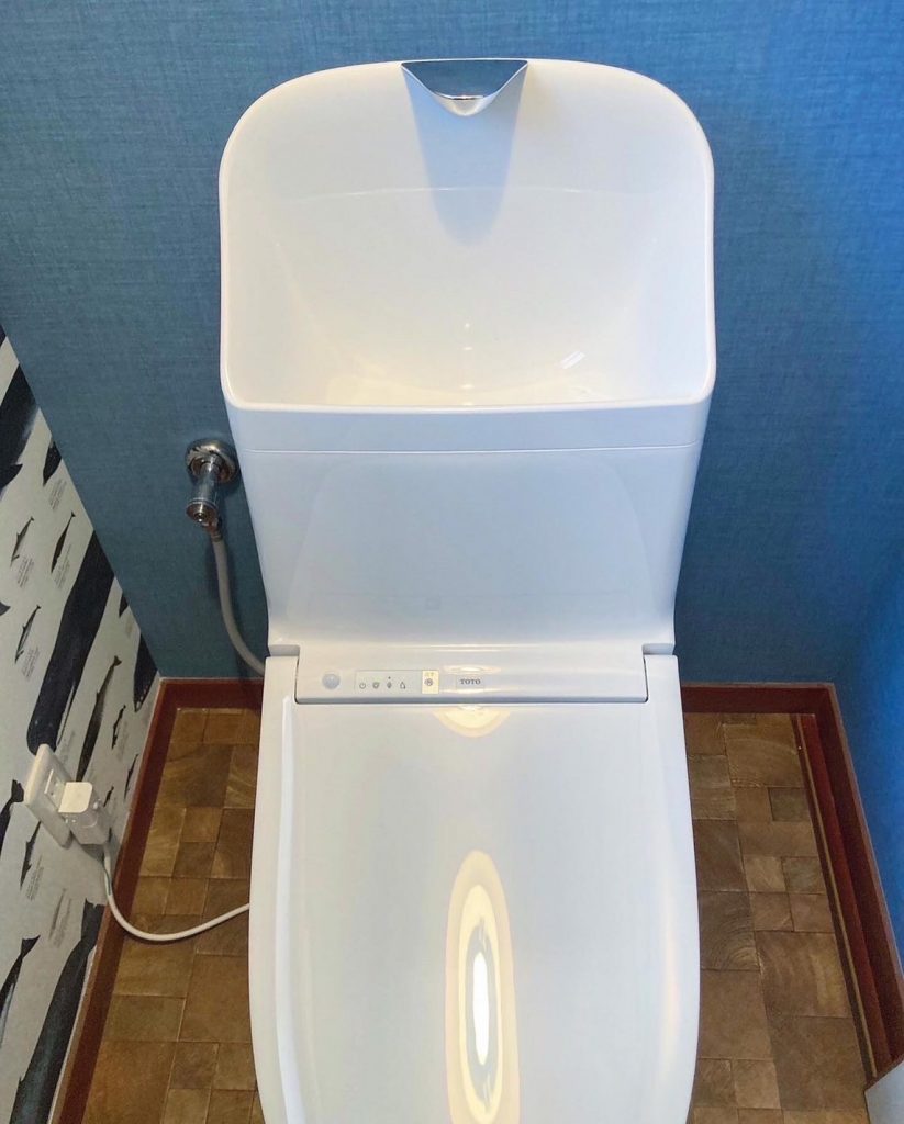 トイレ便器の故障に伴う交換工事と共に、床や天井の壁紙クロスや床のクッションフロアも張替え、内装インテリアを一新。